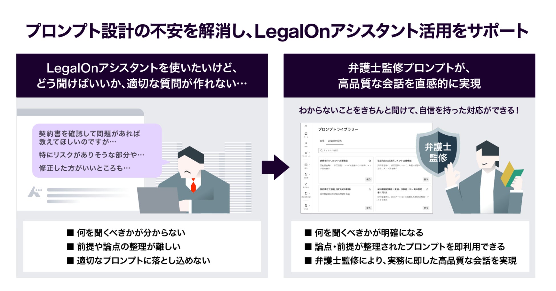 株式会社LegalOn Technologies(本社:東京都渋谷区、代表:代表取締役 執行役員・グループ CEO 角田 望、以下:LegalOn Technologies)が提供する「LegalOn」(https://www.legalontech.com/jp/)は、法務特化型AIエージェント「LegalOnアシスタント」上で、ユーザーが法務実務に即した高品質なプロンプトをすぐに活用できる弁護士監修のスキル(法務実務に応じて活用できる高品質なプロンプト群 )を搭載しました。