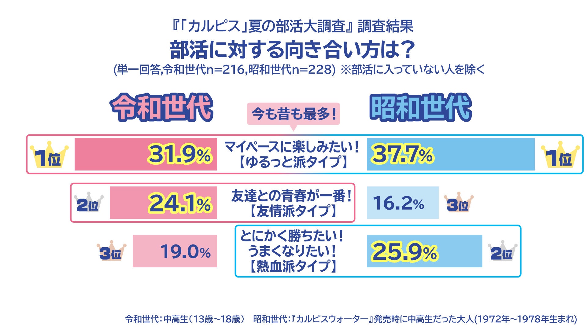 ①実は昭和世代の方がマイペース!? 部活に対して今も昔も“ゆるっと楽しみたい派”が最多