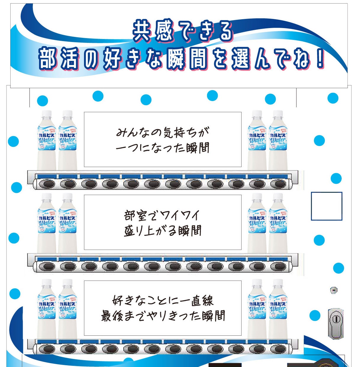 「カルピス」夏の部活大調査で明らかになった、「部活の中で好きな瞬間」や「部活あるある」といった、中高生のリアルな声などを展示するイベント「カルピス」“スキ瞬”部活展を学生が多く集うSHIBUYA109 店頭イベントスペースにて4日間限定で開催します。「部活の中で一番好きな瞬間」を選んで投票すると『カルピスウォーター』がもらえる「スキ瞬投票自販機」を設置し、「みんなの気持ちが一つになった瞬間」「部室でワイワイ盛り上がる瞬間」「好きなことに一直線最後までやりきった瞬間」の3つの“スキ瞬”に投票すると、『カルピスウォーター』に加え、オリジナルTシャツ型ステッカーとリーフレットを配布します。