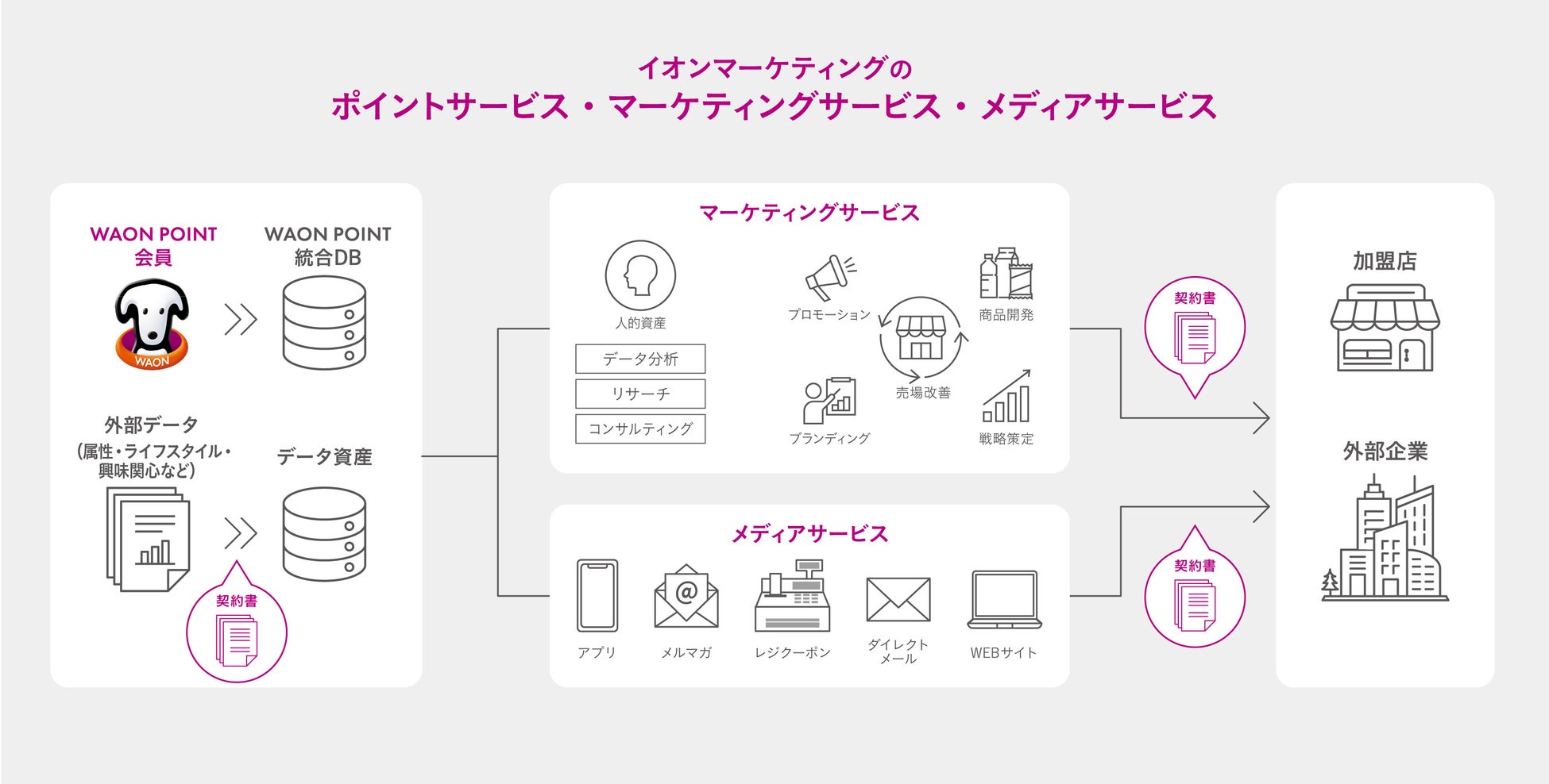 事業内容:WAON POINTサービス運営、マーケティングリサーチ、会員・POS情報を組み合わせた分析サービス、分析に基づく販促サービス