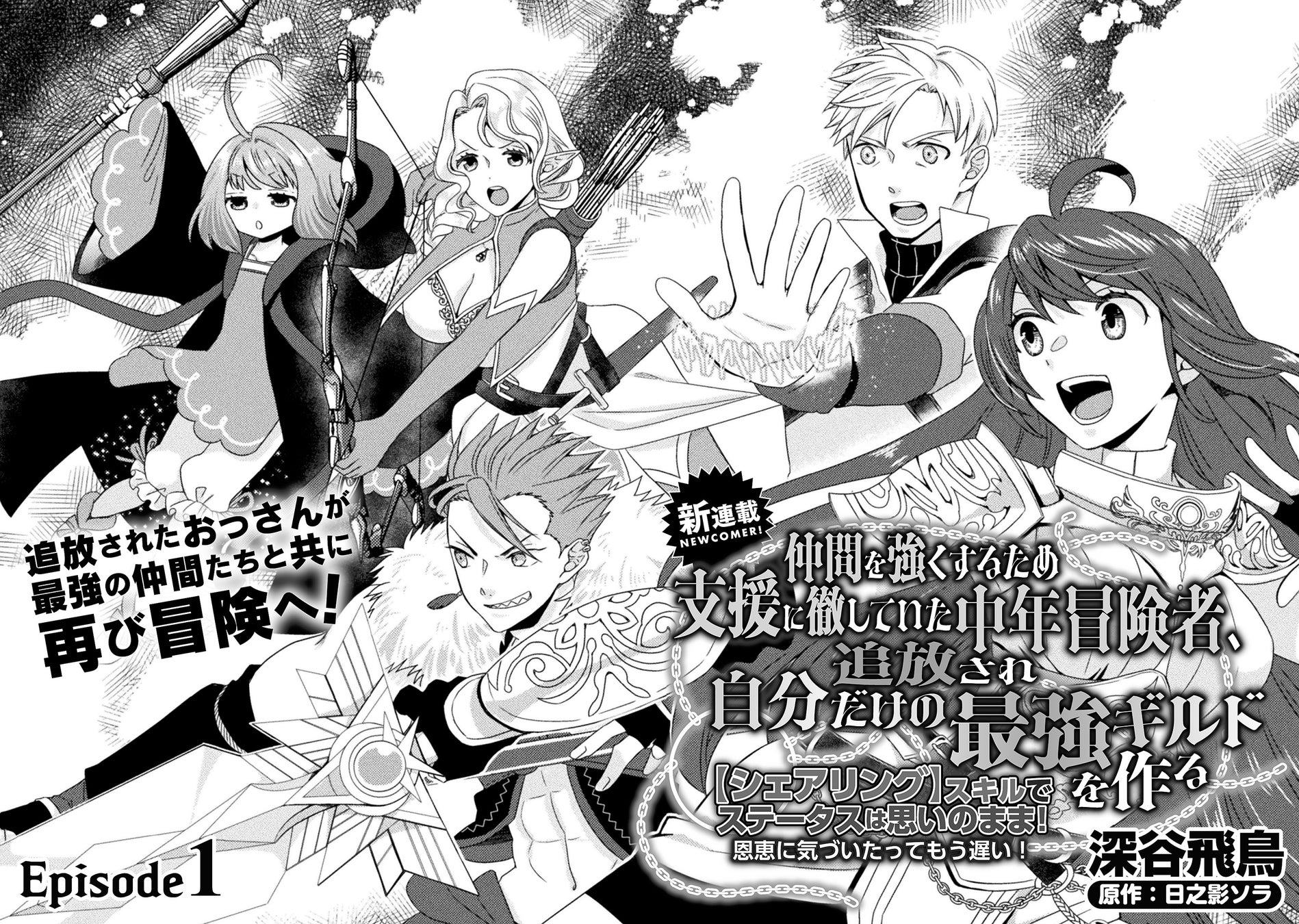 『仲間を強くするため支援に徹していた中年冒険者、追放され自分だけの最強ギルドを作る ~【シェアリング】スキルでステータスは思いのまま! 恩恵に気づいたってもう遅い!~』