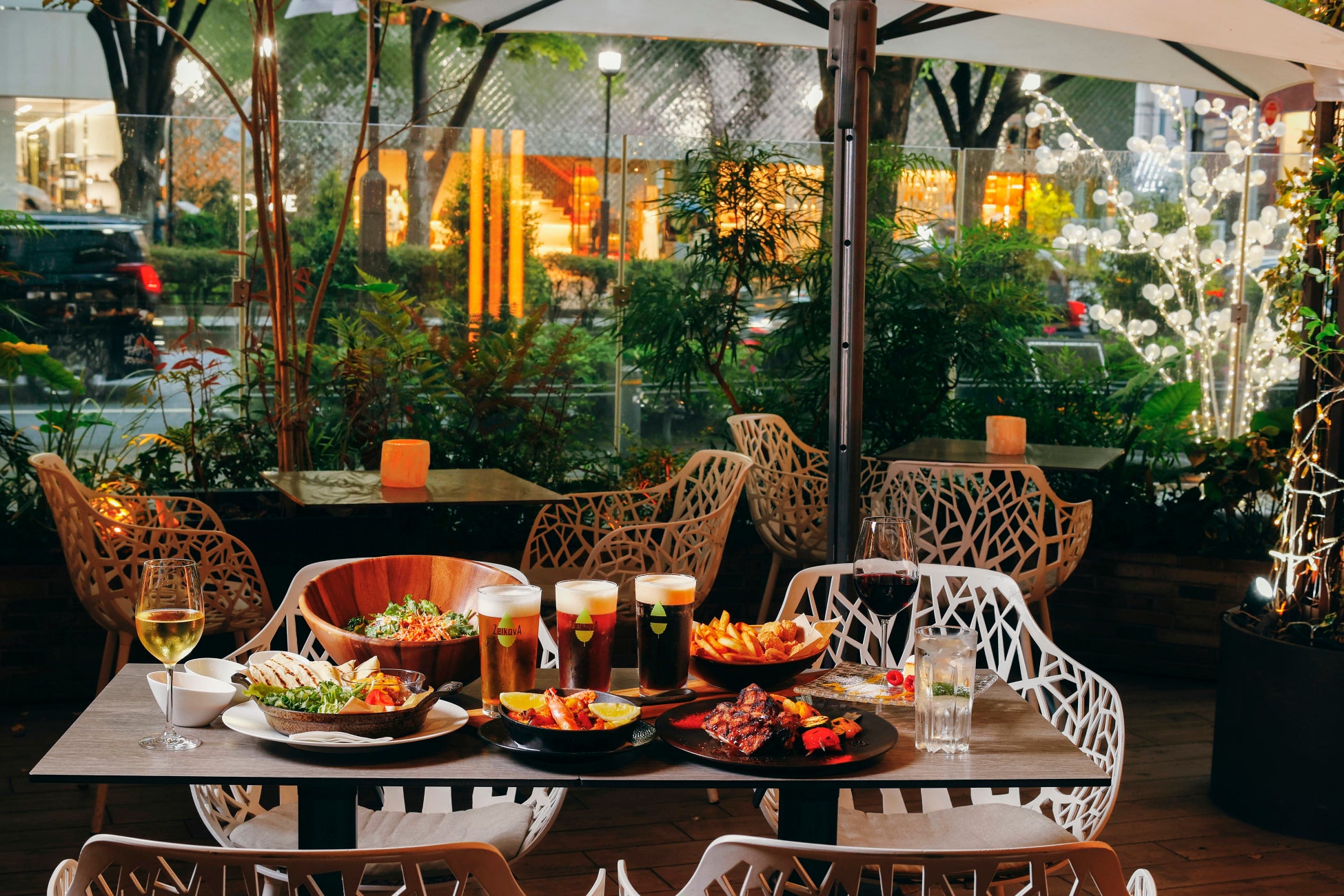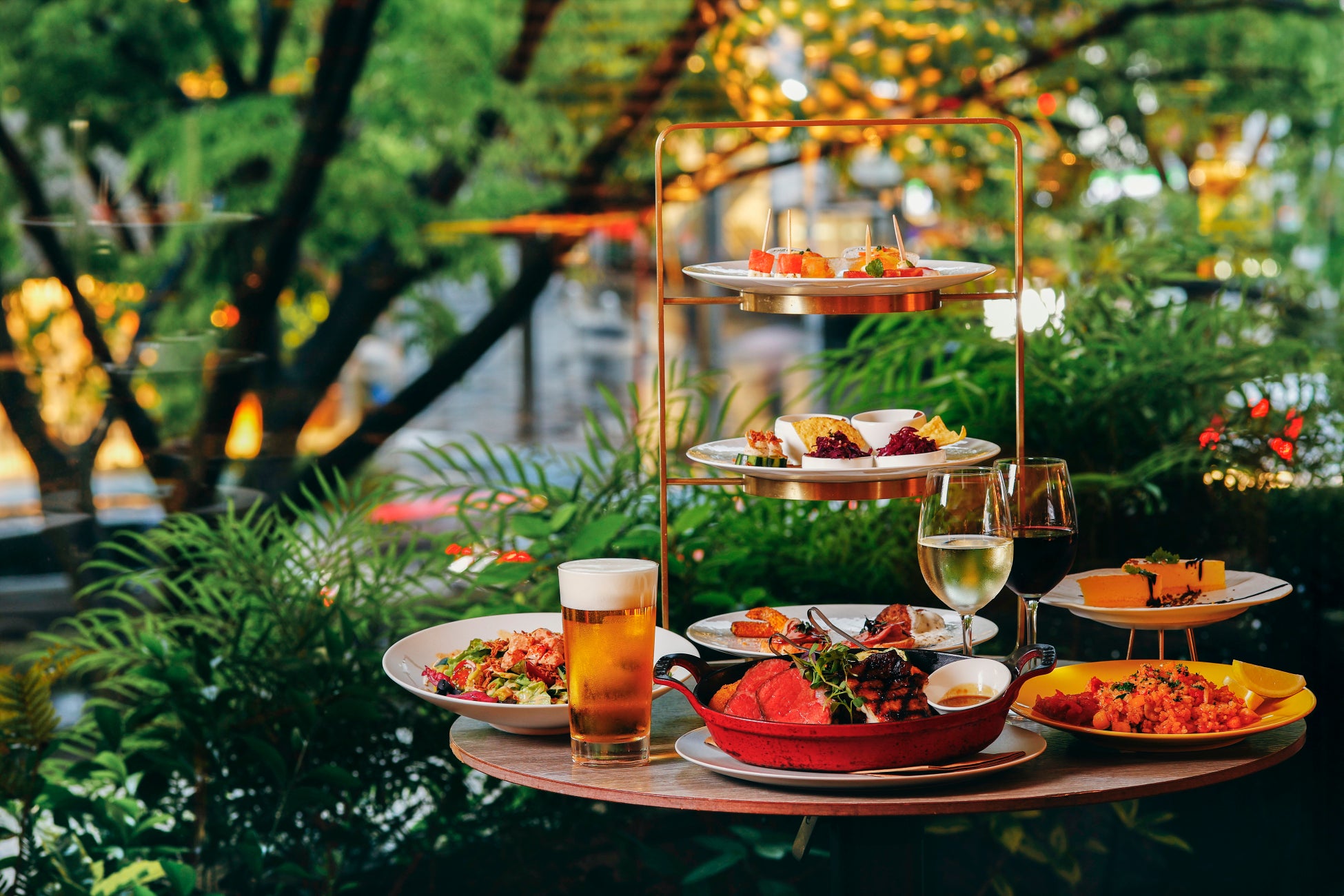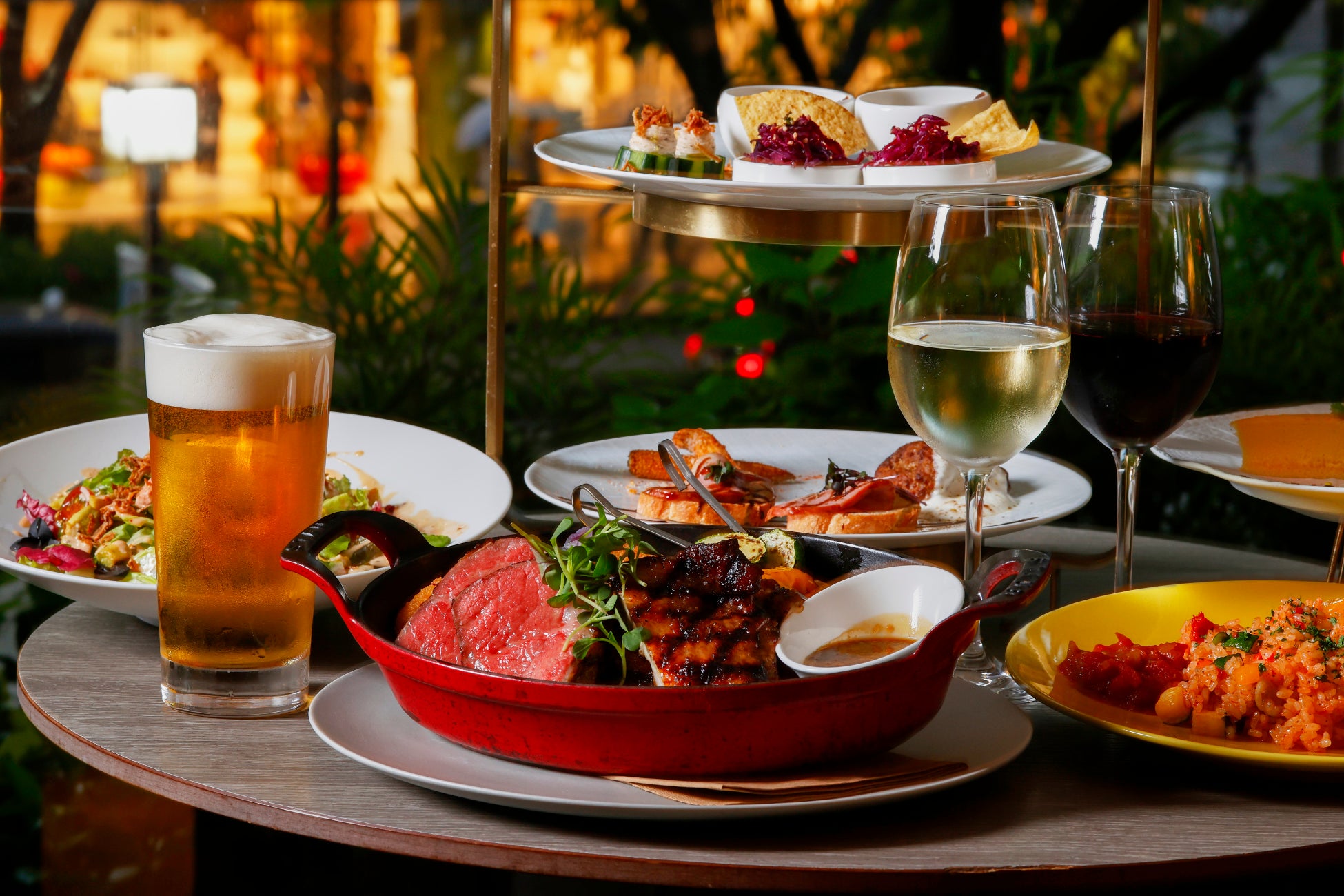 TAVERN by the greenでは、スパイス好きなシェフによる、スパイスやハーブを巧みに使用したメキシカングリルをお楽しみいただけます。色とりどりのコブサラダから始まり、世界各地の料理をアレンジしたタパス9種を3段のスタンドにのせたTAVERN特製のタパススタンド“9つの味覚のワールドトラベル”、グリルレストランならではの豪快なお肉のグリルや、メキシカンシーフードライスをご用意。ケヤキ並木を一望するNYスタイルの店内で、こだわりの贅沢な料理やお酒とともにリラックスできる時間をお過ごしいただけます。さらに、会社のお集まりなど団体利用向けに、広々快適なバンケットルームでもビアガーデンを開催いたします。