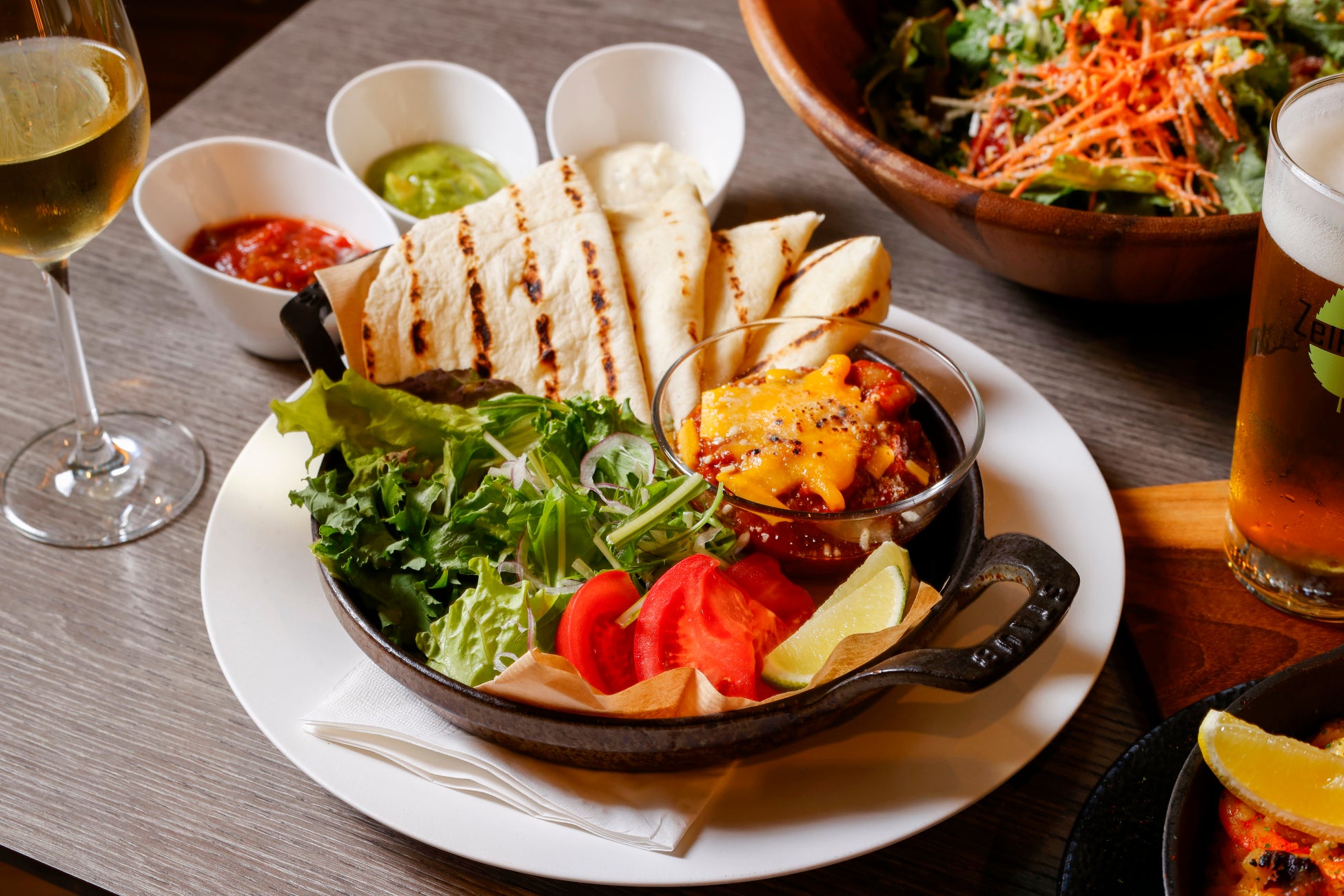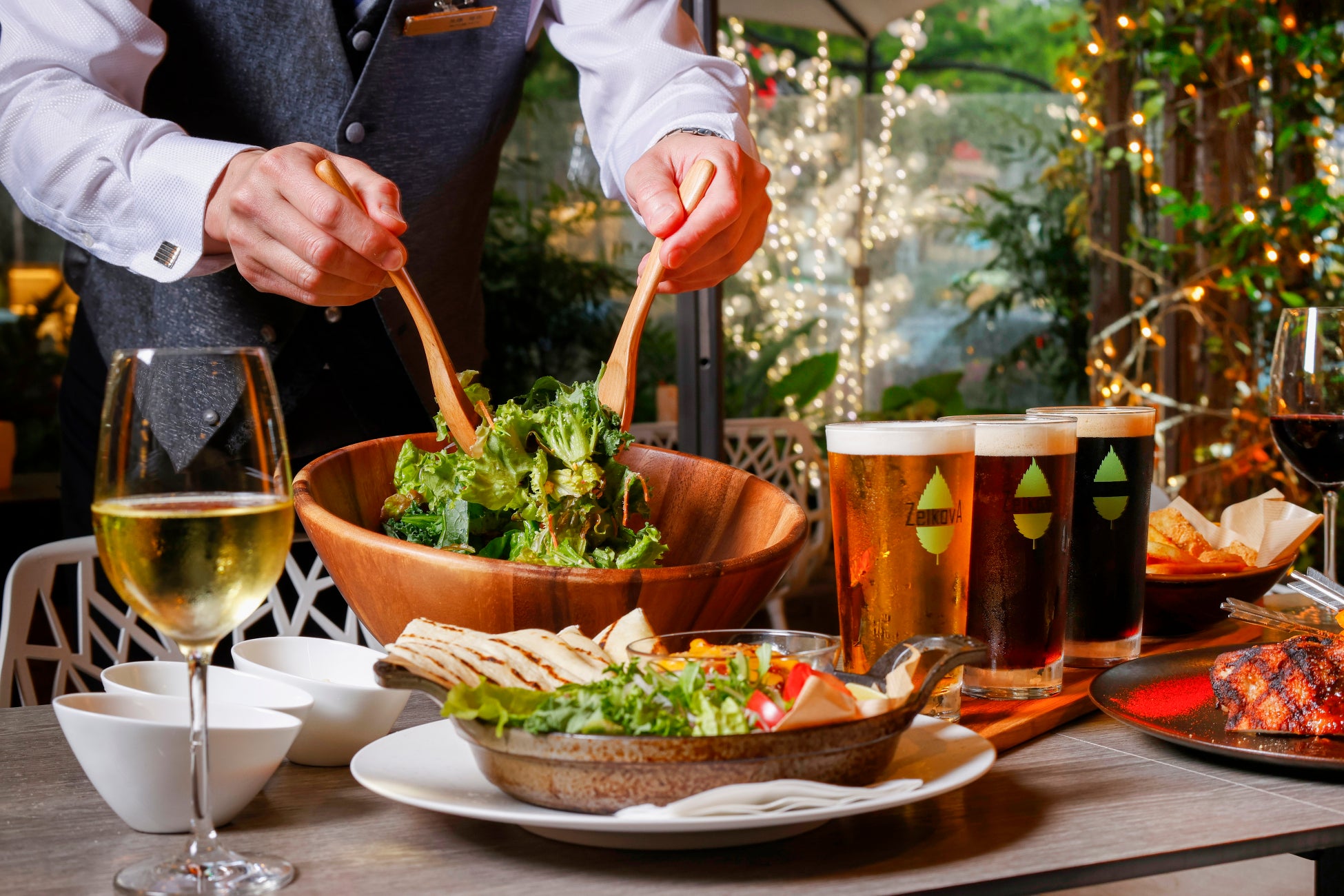 Cafe & Dining ZelkovAでは、ニューヨークのような雰囲気の中で楽しむテクス・メクスバーベキューをお届け。コースはスタッフが仕上げをするおもてなしのサラダからスタートし、ご自身で包んでアレンジする楽しさ満点のベジタリアンミートタコスや、スパイシーな味わいがクセになるフィッシュ&チップス、大胆なグリルチキンと串刺しのグリル野菜などバーベキューメニューがラインアップ。3種のビールの飲み比べやワイン、そのほかカクテルも豊富にご用意し、夏のテラスバーベキューを盛り上げます。