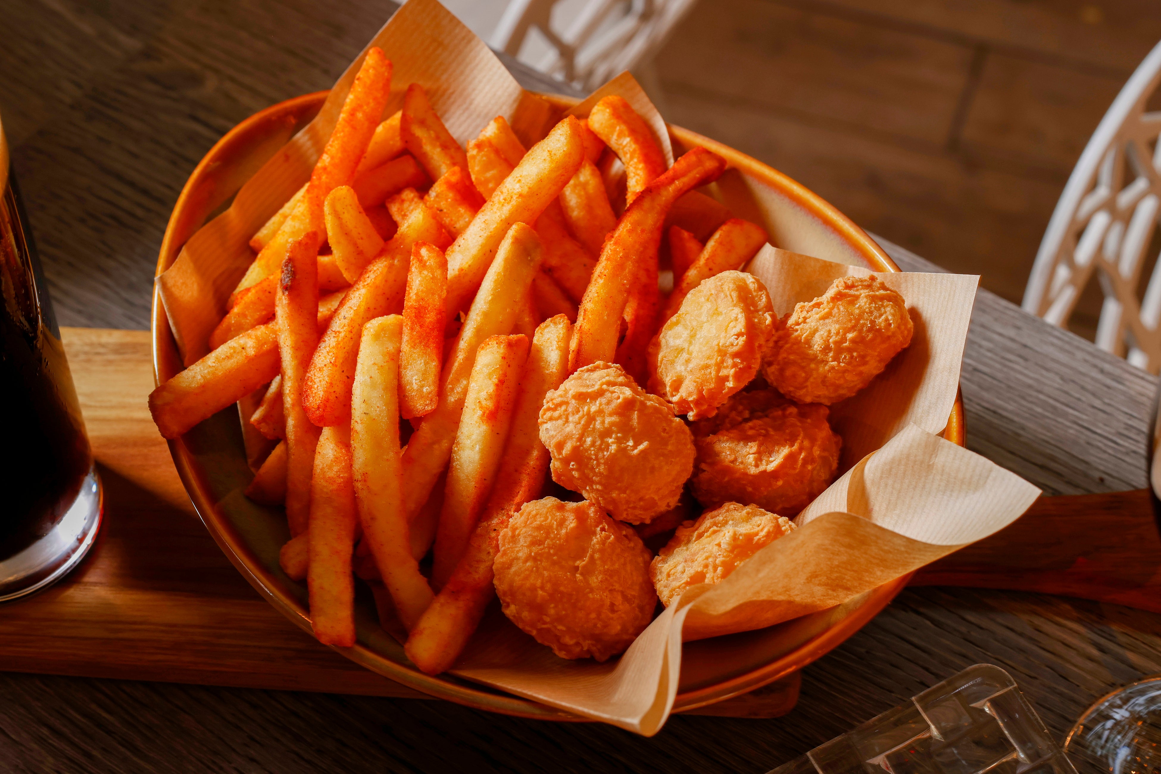 ・スパイシーチキングリル&ポークソーセージ ポテトフライ オニオンリング BBQソース