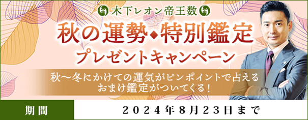 【秋の運勢】木下レオンの特別鑑定プレゼントキャンペーンを木下レオン◆帝王数にて開催中!