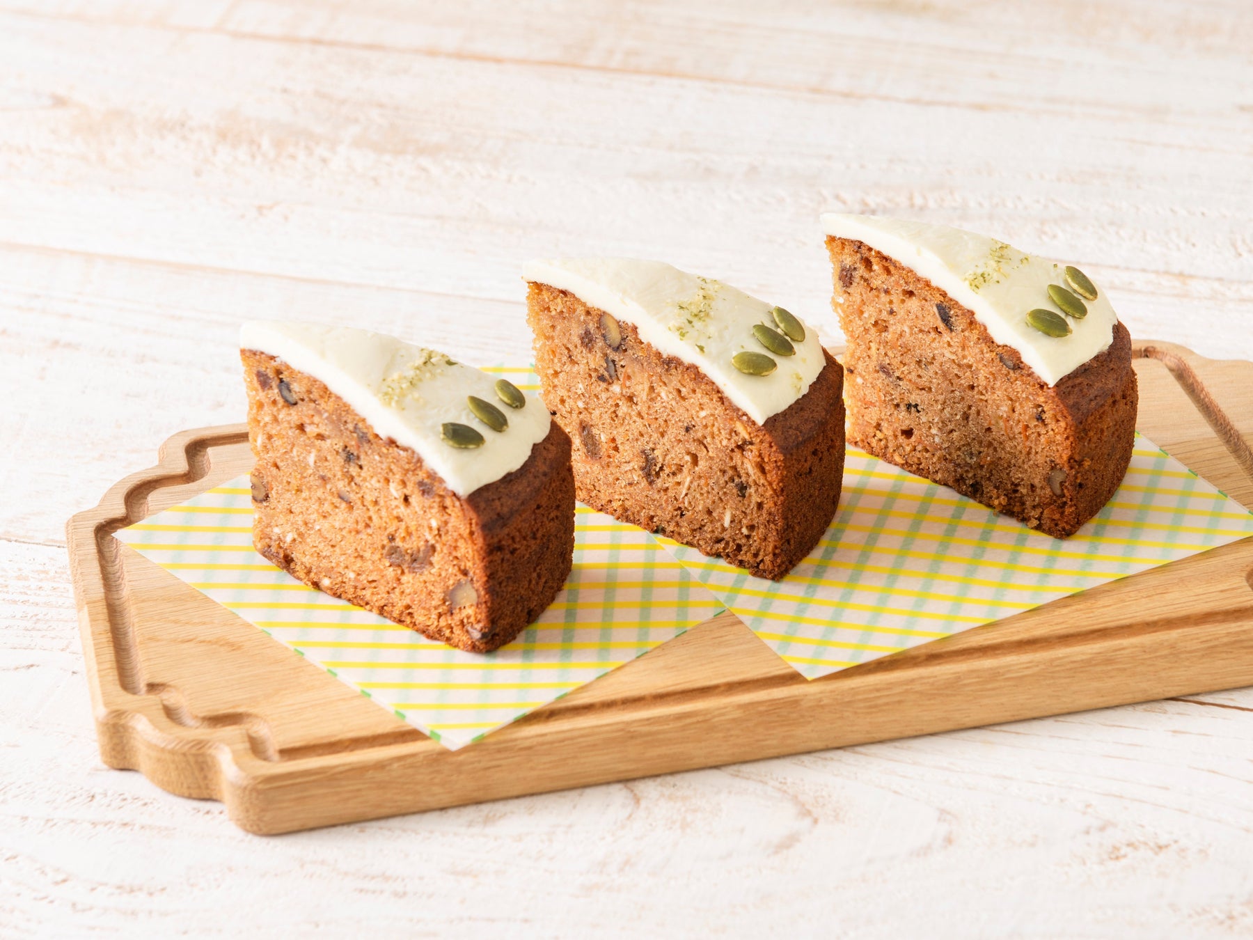 北浦和にある、本場アメリカで学ばれたオーナーが作る本格アメリカンベイクのお店。看板商品のひとつ「キャロットケーキ」は、新鮮なにんじん、ラムレーズンやクルミ、パイナップル、ココナッツに数種類のスパイスを加えてしっとりと焼き上げています。たっぷりとのせた、程よい甘さのクリームチーズのフロスティングも絶妙。※期間限定:4/9~12 ※数量限定:1日30個