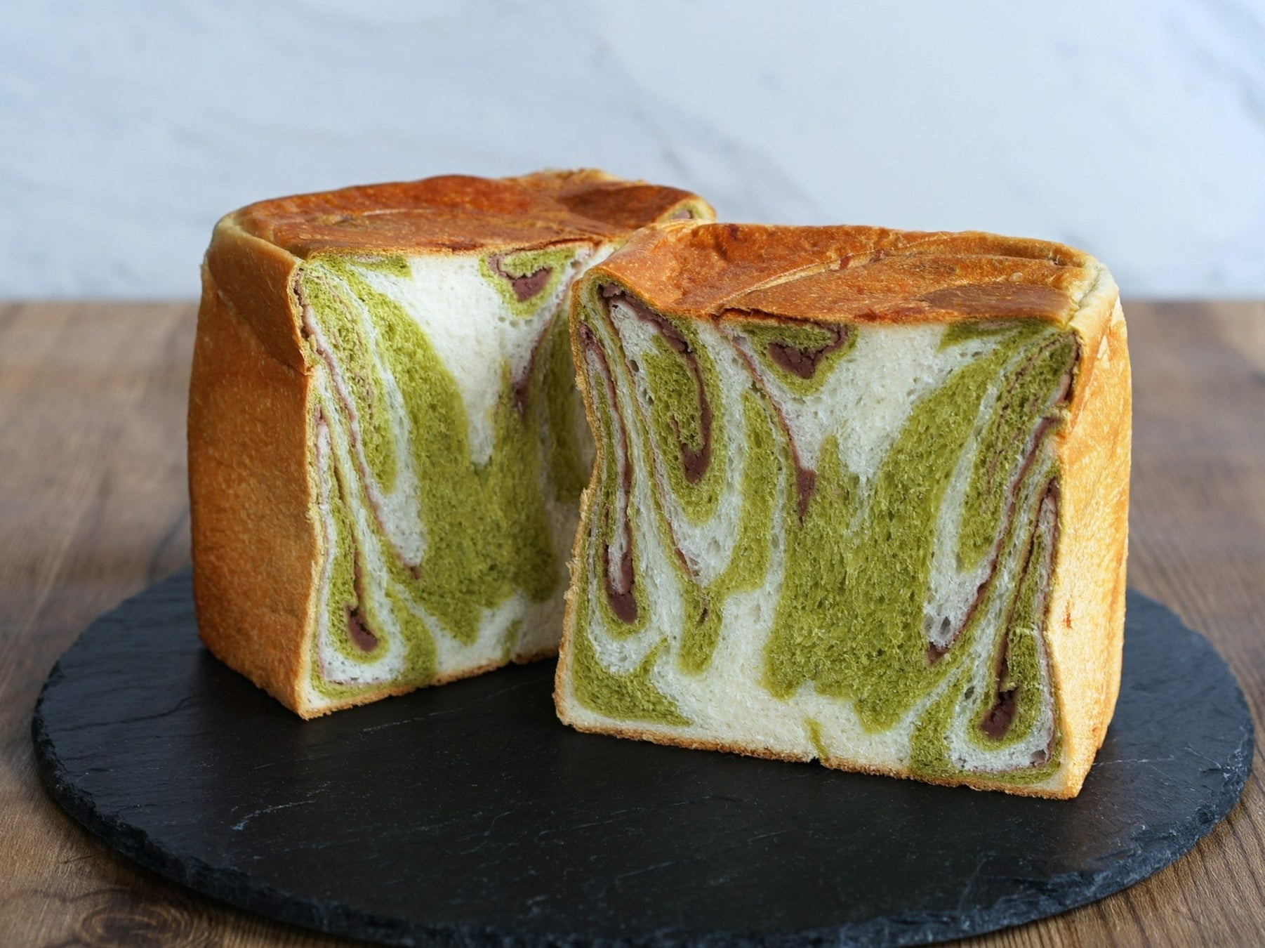 季節感あふれる上質な素材を使ったお菓子やパンなどを取り揃えた、ロイヤルパインズホテル浦和のペストリーショップが期間限定で登場。日本三大銘茶のひとつ、埼玉県特産の「狭山茶」を練り込んだ生地とこしあんを合わせて、食パンにしました。すっきりした甘さにお茶の風味が感じられる一品です。