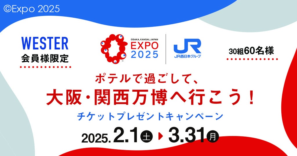 株式会社JR西日本ホロニック(京都市下京区/代表取締役 長田一郎)が運営するUmekoji Potel KYOTO(梅小路ポテル京都/総支配人 松井美佐子)では、2025年2月1日(土)~3月31日(月)の期間、WESTER会員様限定で「ポテルで過ごして、大阪・関西万博へ行こう!チケットプレゼントキャンペーン」を開催いたします。