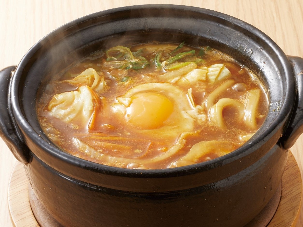 人気のジャワ風カレーをぐつぐつ煮込んだスパイシーな「ジャワ風カレー煮込みうどん」。濃厚なカレーの香りが食欲をそそります。