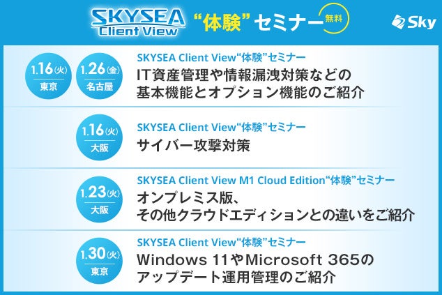 SKYSEA Client Viewハンズオンセミナー 1月開催(東京・名古屋・大阪)