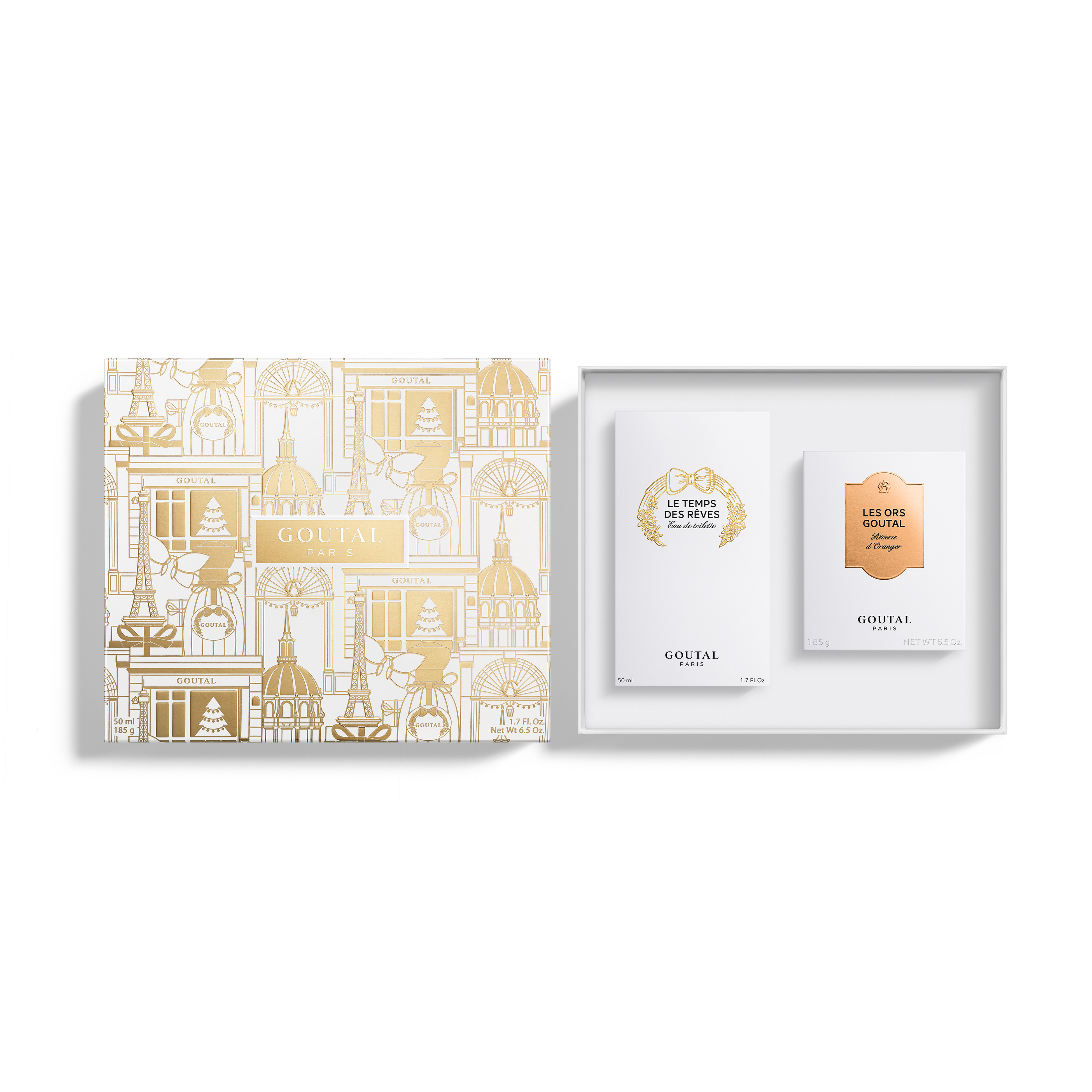 パリのクリスマスからインスパイアされ、美しく輝くウィンドウをイメージしたパッケージ。オレンジブロッサムが香る「ル タン デレ―ヴ オードトワレ」とグルマン調の新しい香り「レヴェリー ドランジェ」のキャンドルをセット。
