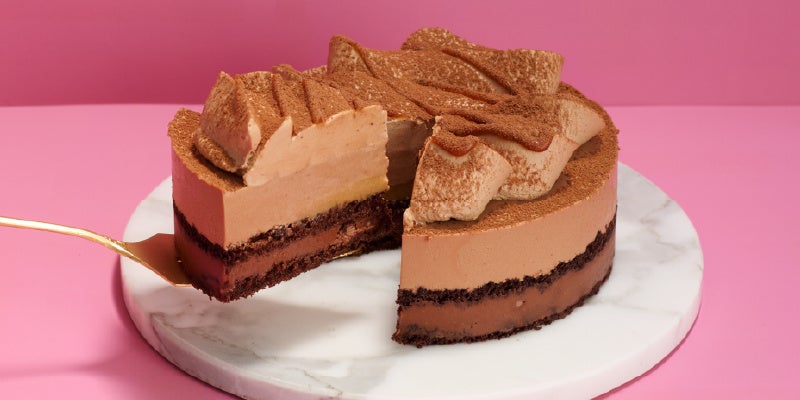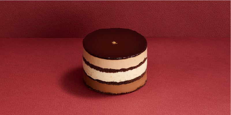 3種のチョコレートムースを重ねた口どけなめらかな3号サイズのケーキです。