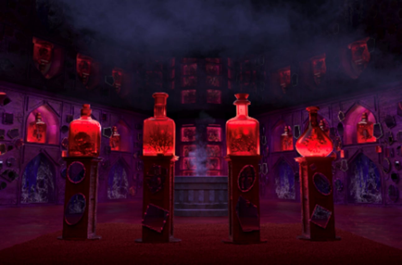 アトラクションの舞台は、感情を司る4人の魔女たちが棲まう“鏡だらけの館”。