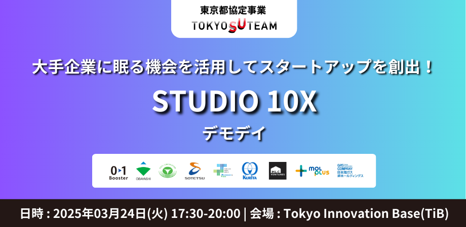 登壇者決定!大手8社に眠る機会を活用してスタートアップを創出!東京都協定事業「STUDIO 10X」デモデイ - 3月24日開催