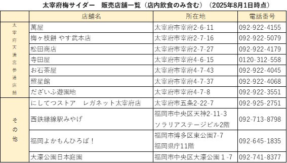 太宰府市(市長:楠田 大蔵)と西日本鉄道㈱(福岡市、代表取締役社長執行役員:林田 浩一 以下「西鉄」)は、太宰府市の沿線活性化・魅力向上を目指した連携の一環として、2025年8月1日(金)より「太宰府梅サイダー」を販売いたします。本取り組みは今年で10年目を迎えます。