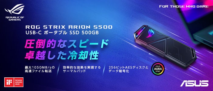 NVMe M.2 SSDを高速USBストレージとして使用できる、光るUSB-C外付けポータブルSSD 500GB、ROG STRIX ARION S500」を発表