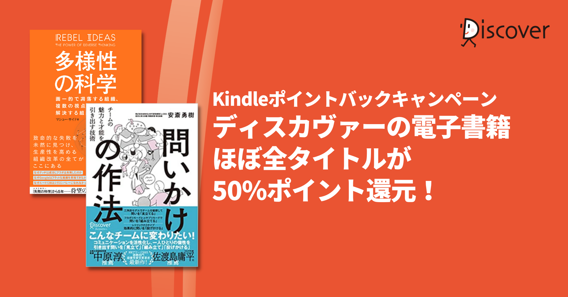2/18から3/3まで、Kindleにて、ディスカヴァーの電子書籍ほぼ全タイトルにつき、50%ポイント還元キャンペーンを開催中です。