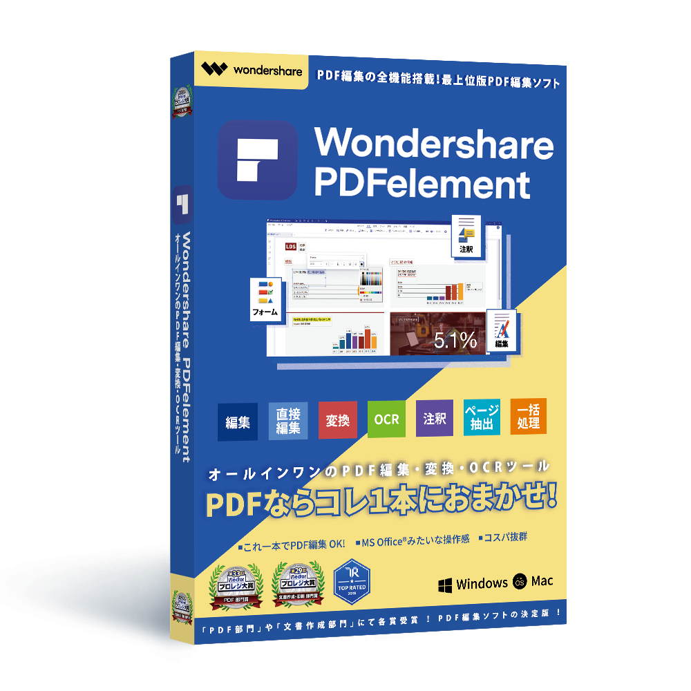 PDFを直接編集できるソフトウェアで、結合・変換・OCR機能などPDFに関する全ての編集機能を備えており非常にコストパフォーマンスが高い製品です。
