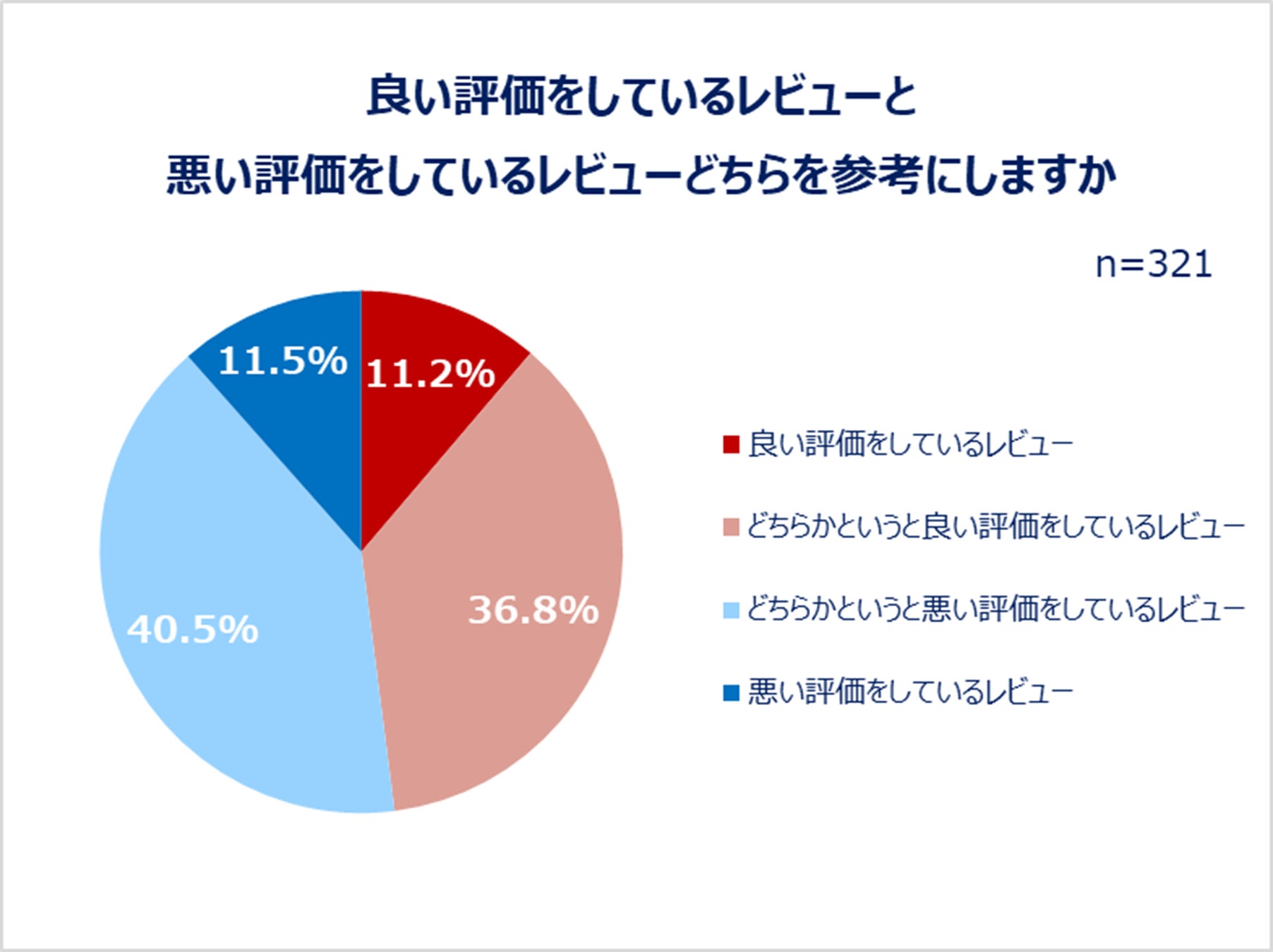 良い評価のレビューと悪い評価のレビュー、どちらを参考にするかの割合は半々