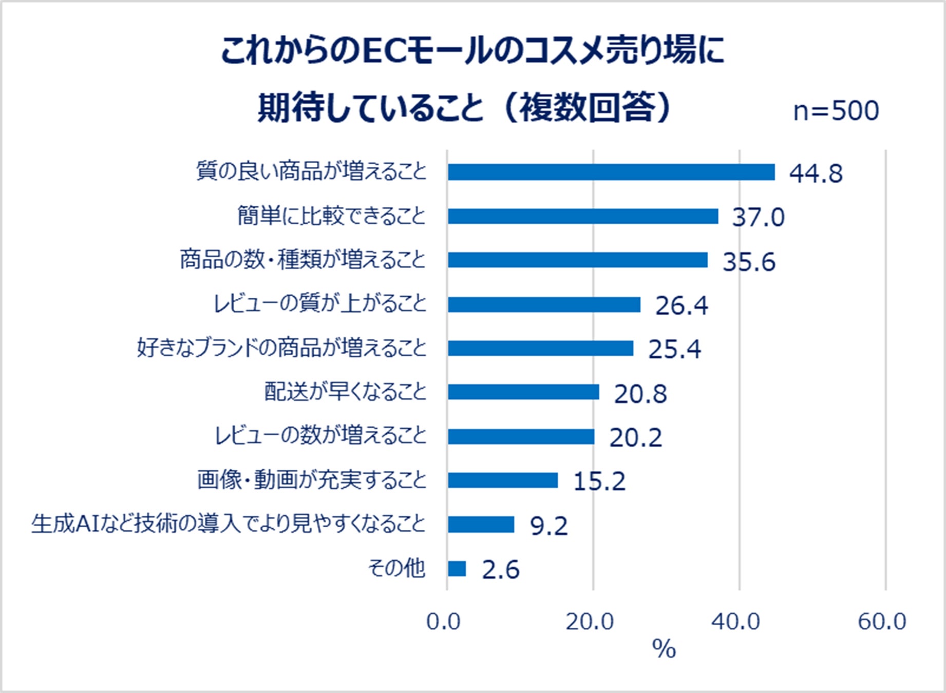 3.これからのECコスメ売り場に期待すること1位「質の良い商品が増えること」