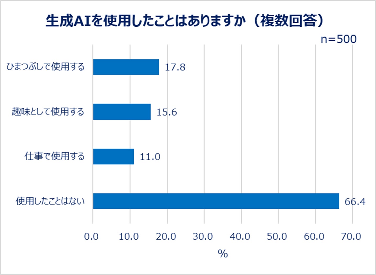 近年の技術の進化により、私たちの生活に変化をもたらしているものの一つに、生成AIが挙げられます。生成AIを使用したことがあるかを聞いたところ、約3人に1人の女性が使用したことがあると分かりました。