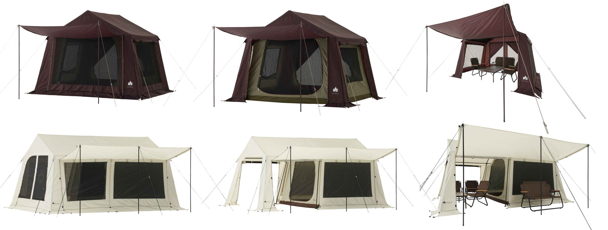 優れた機能性と高級感のあるデザインを兼ね備えた「グランベーシック」や「PREMIUM」ライン、とんがり屋根が特徴のワンポールテント「Tepee」シリーズに加え、普段は触れること少ない大型ドーム「デカゴン」や「オクタゴン」なども一部の店舗で特別に展示されており、キャンプ初心者だけでなく経験者の方も楽しめるイベントとなっております。また、抜群の居住性で長期滞在に適した「グランベーシック リバイバルコテージ L-BB」と、レトロなデザインに最新の機能と快適性をプラスした「プレミアム リバイバルキャビンテント L-BB」は、特別価格でお得にご購入いただけます。