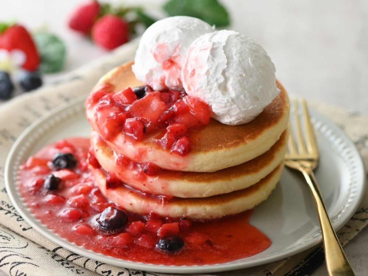 その中でも安定の人気の『パンケーキ』コーナーにて、新登場の『トリプルベリーパンケーキ』!