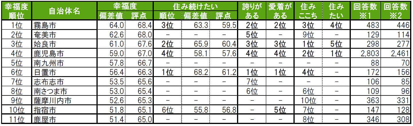 •新聞・雑誌、テレビ・ラジオ等の報道関係者におかれましては、本リリースを掲載・報道または引用する場合には、「街の幸福度&住み続けたい街ランキング2022<鹿児島県版>」と出所の表記をお願いします。