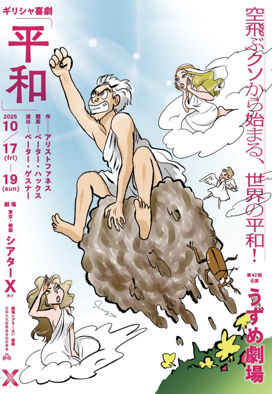うずめ劇場第42回公演 ギリシャ喜劇『平和』の上演を記念して、応援グッズの販売がUP-Tコラボショップにてスタート!今回のオリジナルグッズは、うずめ劇場とゆかりの深いふたりのアーティストによる特別制作。 『南くんの恋人』の原作者として知られる 内田春菊 がイラストを担当し、YouTubeチャンネル『ふたりぱぱ』で人気の みっつん がデザインを総合プロデュース。ここでしか手に入らないユニークなラインナップとなっています。さらに、グッズ収益の一部は、2025年11月に開催される ベトナム国際実験演劇祭への遠征費用の応援 に充てられます。