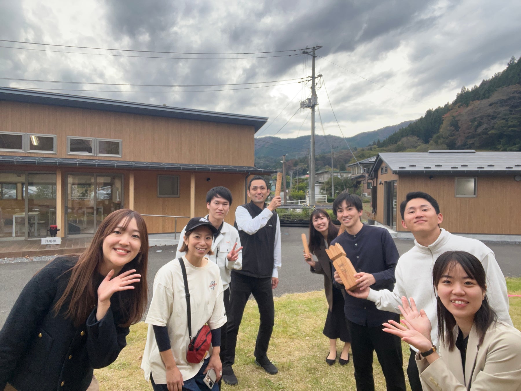 ・東日本大震災時に使用されていた仮設住宅の木材を利用したワーキングスペースでのリモートワーク