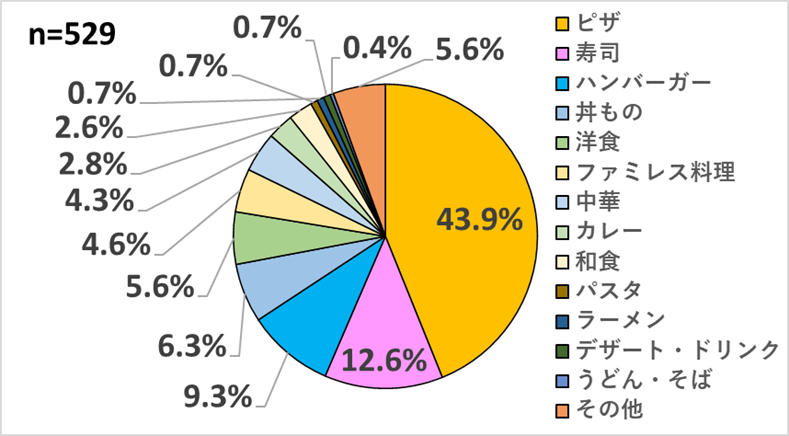 質問:フードデリバリーで最もよく頼むメニューは何ですか?