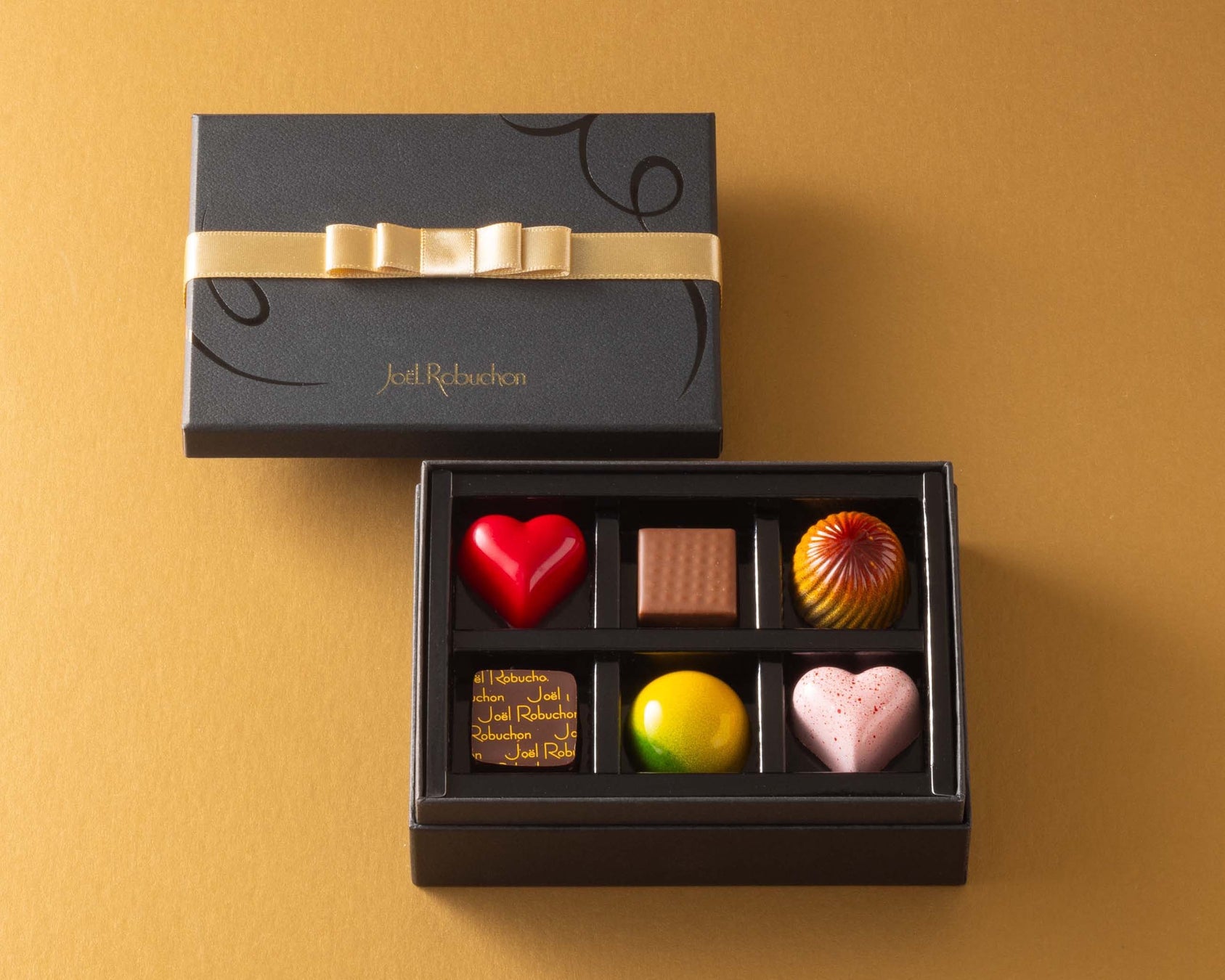 ・『ミシュランガイド東京2025』にて最高評価である三つ星に18年連続で選ばれた、ガストロノミー“ジョエル・ロブション”のシェフソムリエ 高丸智天がチョコレートに合うフランスの代表的なお酒8種をセレクトし、エグゼクティブパティシエの髙橋和久、さらにディレクトゥール・キュイジーヌ(総料理長)の関谷健一朗とジョエル・ロブションチーム一丸となって生み出した、唯一無二のボンボンショコラです。