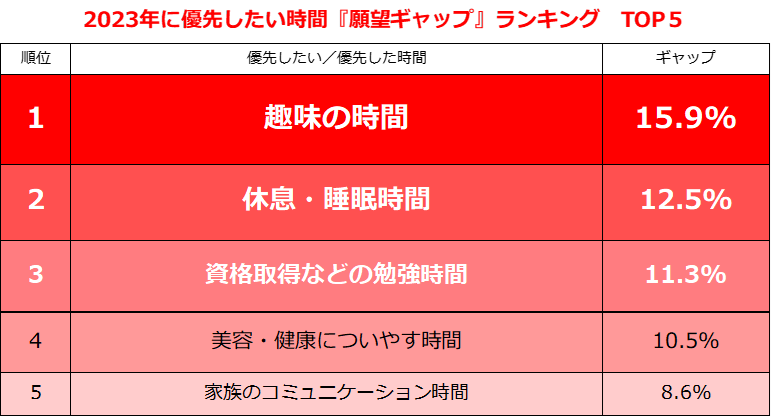 6.2023年に優先したい時間『願望ギャップ』/ランキングTOP5
