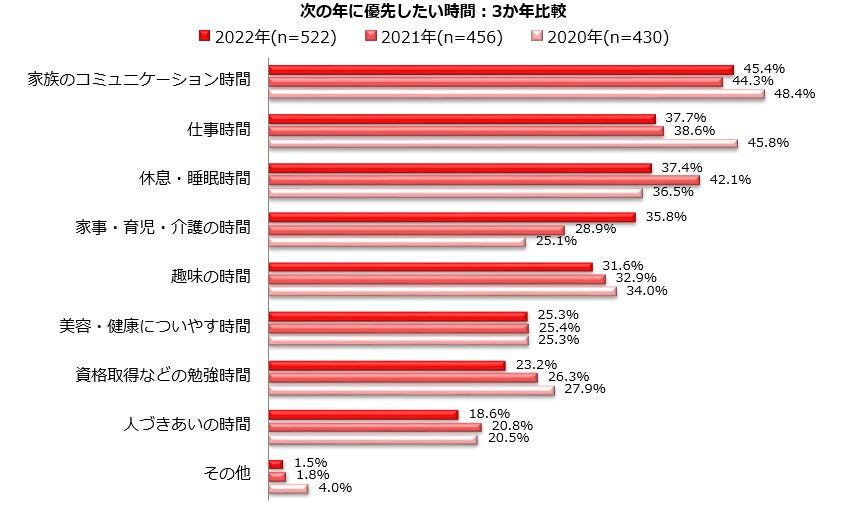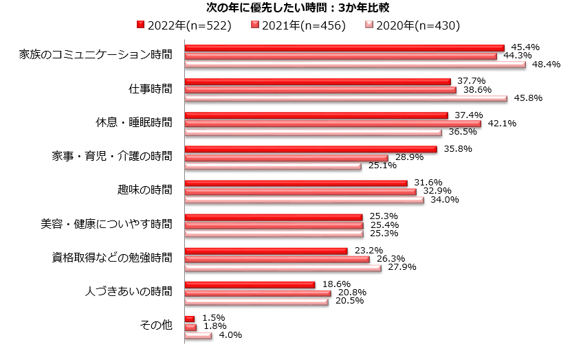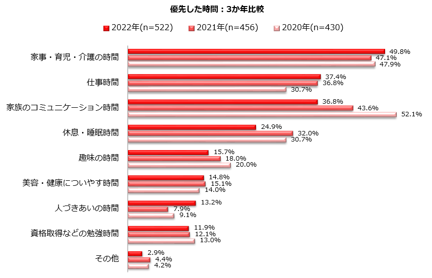 2.2022年に優先した時間TOP5/優先した時間:3か年比較