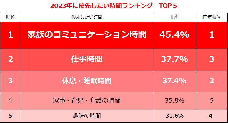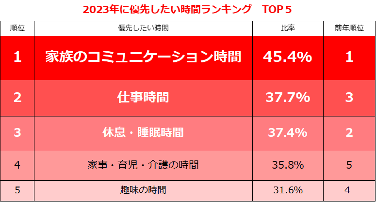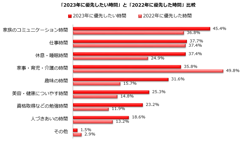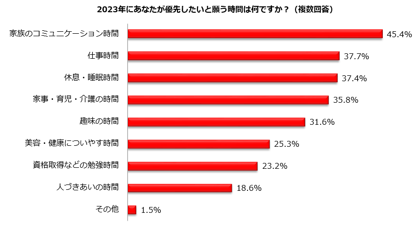 3.2023年に優先したい時間 1位「家族のコミュニケーション」45.4%