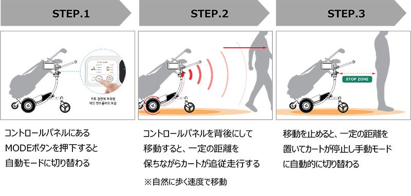 ・AI技術で、プレイヤーと一定の距離を保ち歩行速度にあわせて追従走行。