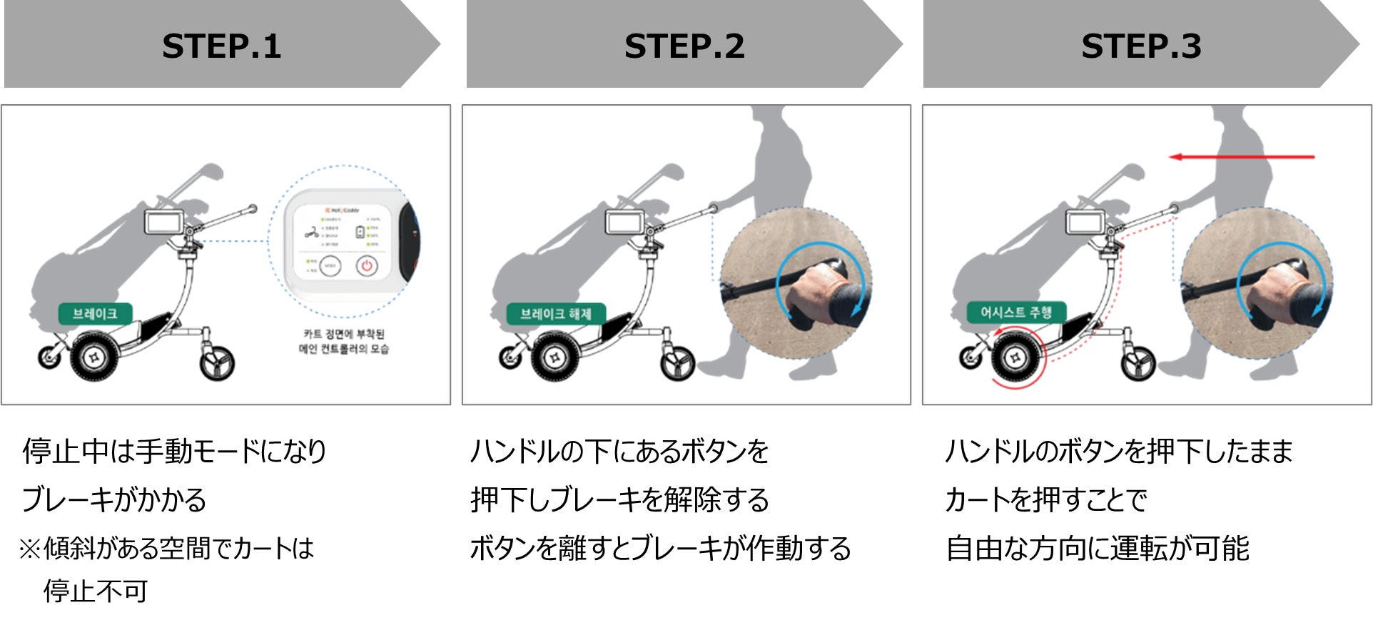 ・手元のボタンを押して手引き操作もできるほか、モーター動力でプレイヤーの力をアシスト。