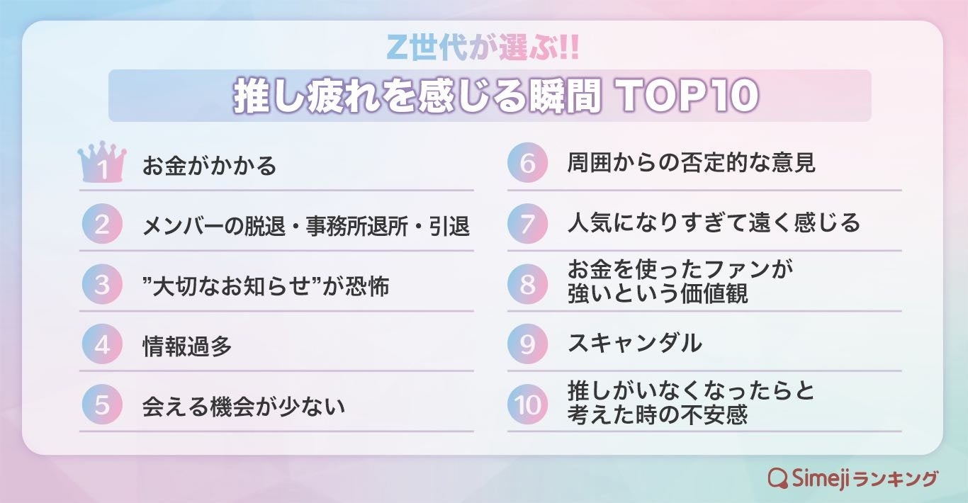 今回のテーマは、Z世代が選ぶ!!「推し疲れを感じる瞬間TOP10」