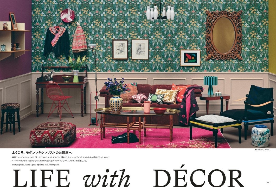 春夏ファッションのトレンドに浮上した“マキシマム”なスタイルに影響を受け、トレンドもヴィンテージも自由な感覚でミックスさせたインテリア。特集“LIFE with DÉCOR ようこそ、モダンマキシマリストのお部屋へ”では、色や物語をたくさんつめ込んだ自分だけの異次元を作るヒントを全14ページにわたり提案します。旅先で衝動買いした民芸品や、手仕事に惹かれた思い出の品など個性あふれるクラフトを飾るウォールギャラリーや、さまざまな国のテーブルウエアを集めた、色も柄もスタイルもノールールで組み合わせる新しいテーブルセッティングなど、ミックスマッチなインテリアの世界をお楽しみください。