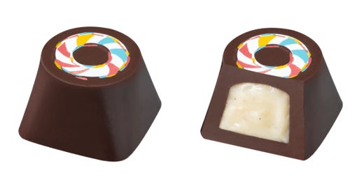 香り豊かなバニラガナッシュをダークチョコレートで包みました。トップには色鮮やかな浮き輪のイラストを描きました。