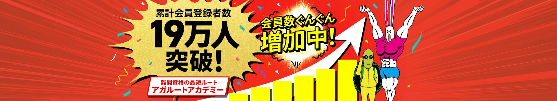 このたび、株式会社アガルート(本社:東京都新宿区、代表取締役:岩崎北斗)が運営するオンライン資格予備校「アガルートアカデミー」の累計会員登録者数が19万人を突破しました。