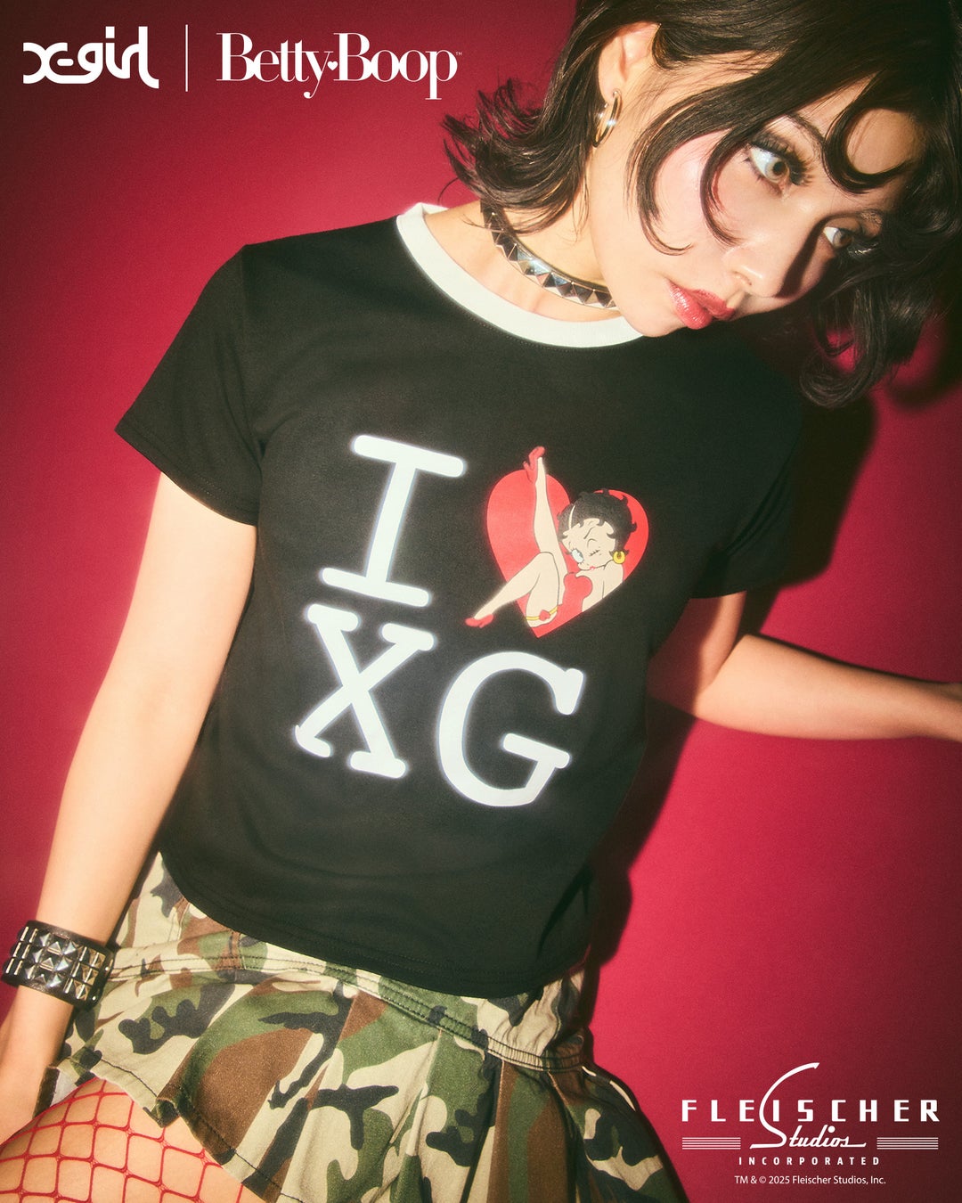 今回のコレクションでは、X-girlのアイコニックなロゴ「I ♡ XG」とBETTY BOOP™を組み合わせたグラフィックが目を引くコンパクトTシャツと、ヴィンテージライクな加工感が魅力のオーバーサイズTシャツの2型を展開します。