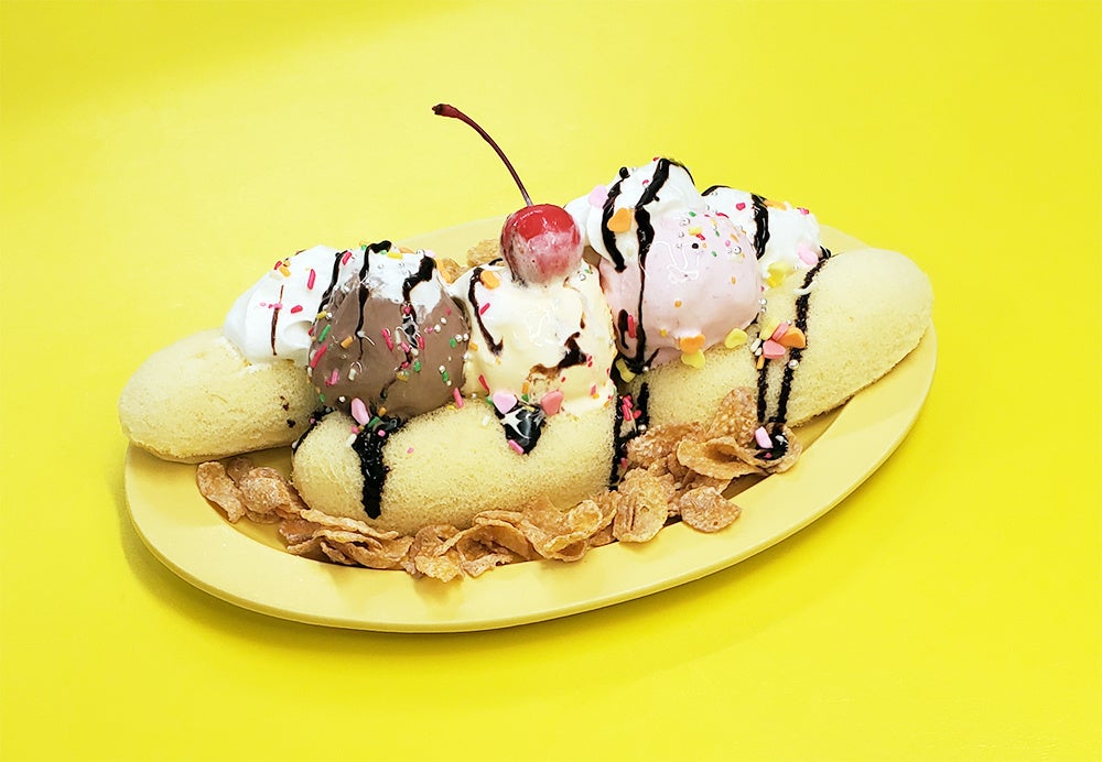 今年の夏休みは東京に来てくださる方も多いのではないでしょうか。お土産として選んでいただくことが多い「東京ばな奈」、いつもとは少し違った楽しみ方をしてみませんか?「東京ばな奈スプリット」で、東京での思い出をおうちでおいしく締めくくってみてくださいね。バナナカスタードクリームたっぷりの「東京ばな奈」に、アイスクリームやホイップクリームを絡めて、チョコソースやカラースプレーでまぶしく飾り付け。サクサクのコーンフレークで食感にも楽しいアクセントをプラスしました。