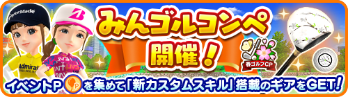 コンペのランキング報酬には、「飛距離最大30ヤードUP」「SP/BP65%UP」の効果があるカスタムスキル「超チャンスパワー2」を搭載した「カスタムギア」が登場いたします。