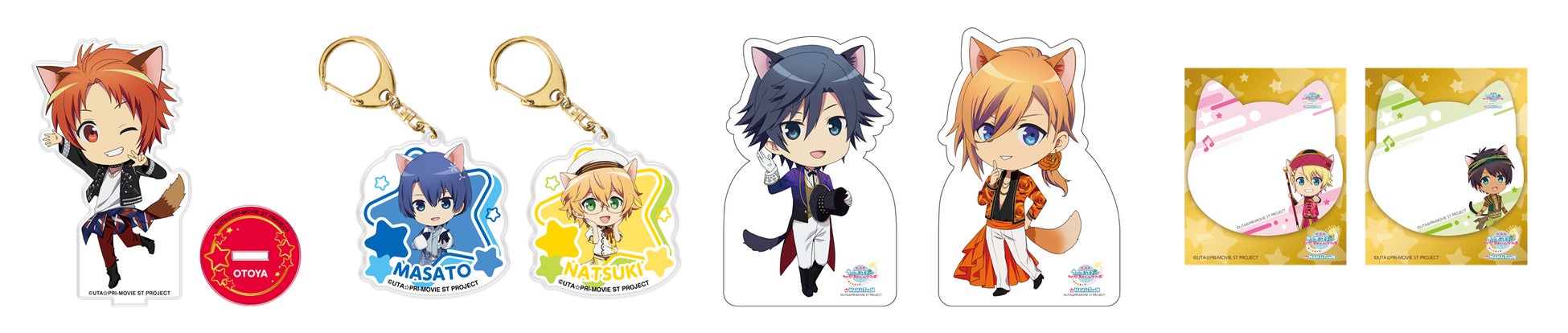 本イベントでは、アイドルグループ『ST☆RISH』の7人が『劇場版 うたの☆プリンスさまっ♪ マジLOVEスターリッシュツアーズ』の劇中に登場する2種類のステージ衣装を身にまとったねこ耳姿の描きおろしちびキャライラストが登場します。会場ではオリジナルグッズの販売や、オリジナル景品がもれなくもらえるミニゲーム(2種)をお楽しみいただけるほか、アイドルたちをイメージしたデザート&フードも販売します。