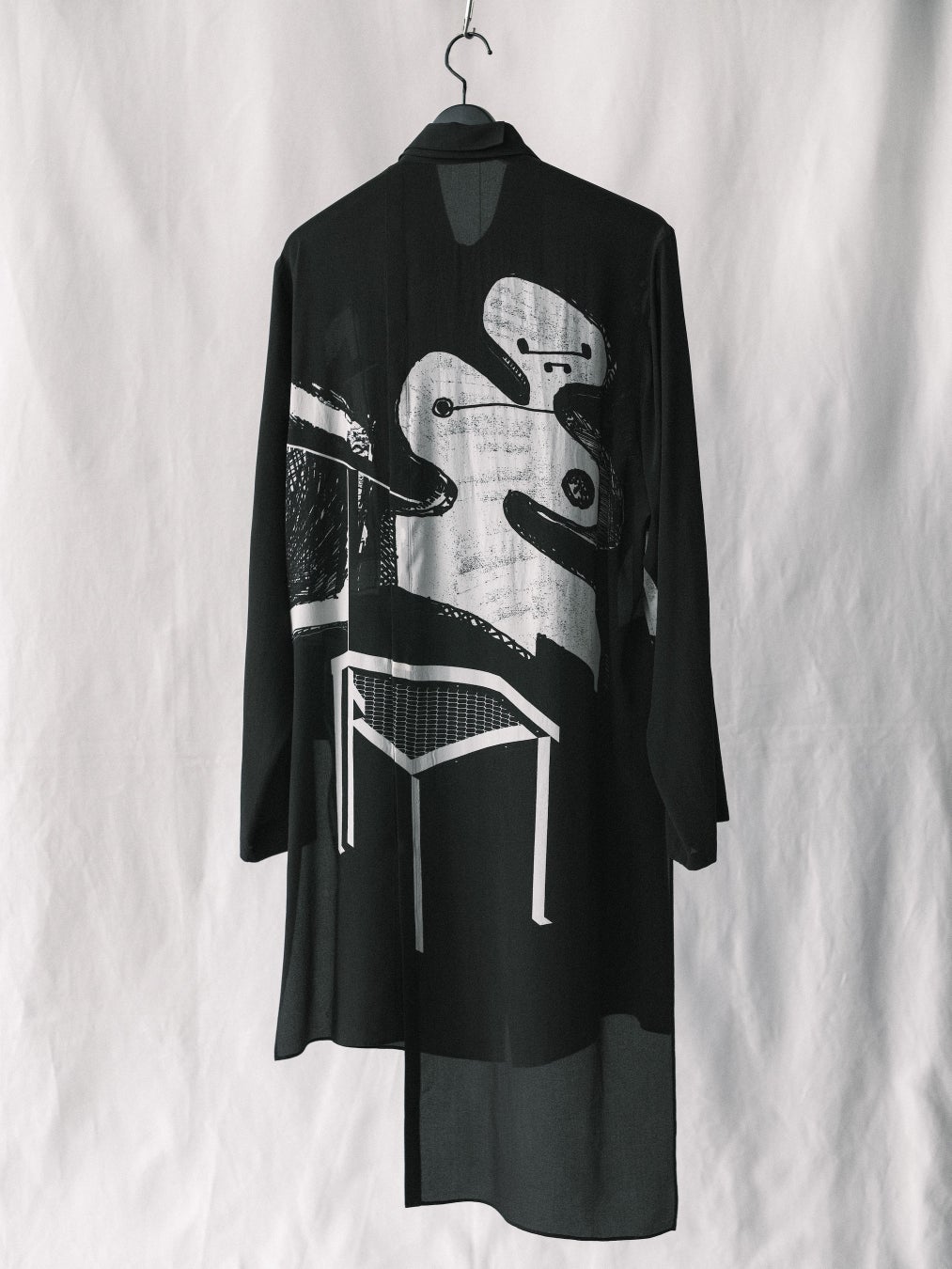 ジャケット、シャツ、パンツの全9型に、M/M(Paris)のアートワークを大胆に落とし込み、プリント、抜染、アップリケなどの技法を用いて、グラフィックをモノトーンで表現し、その存在感を引き立てています。