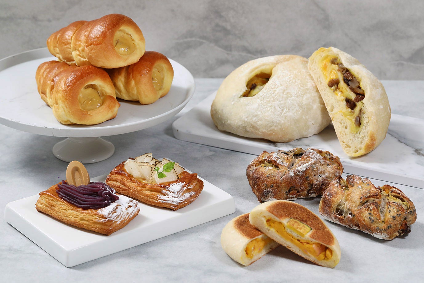 創業当時からご愛顧いただいている看板商品である丸い高加水パン『ブール』を季節展開した『季節のブール』からは、秋の味覚を一度にお楽しみいただける『芋・栗・南瓜のブール』が新発売。その他、ビジュアルからも秋らしさを感じていただける『紫芋モンブラン』や『和梨のデニッシュ』、ハード系の『干し芋と黒豆のライ麦』など、全6商品をご用意いたしました。バゲットラビットが贈る秋のラインナップをどうぞお楽しみください。
