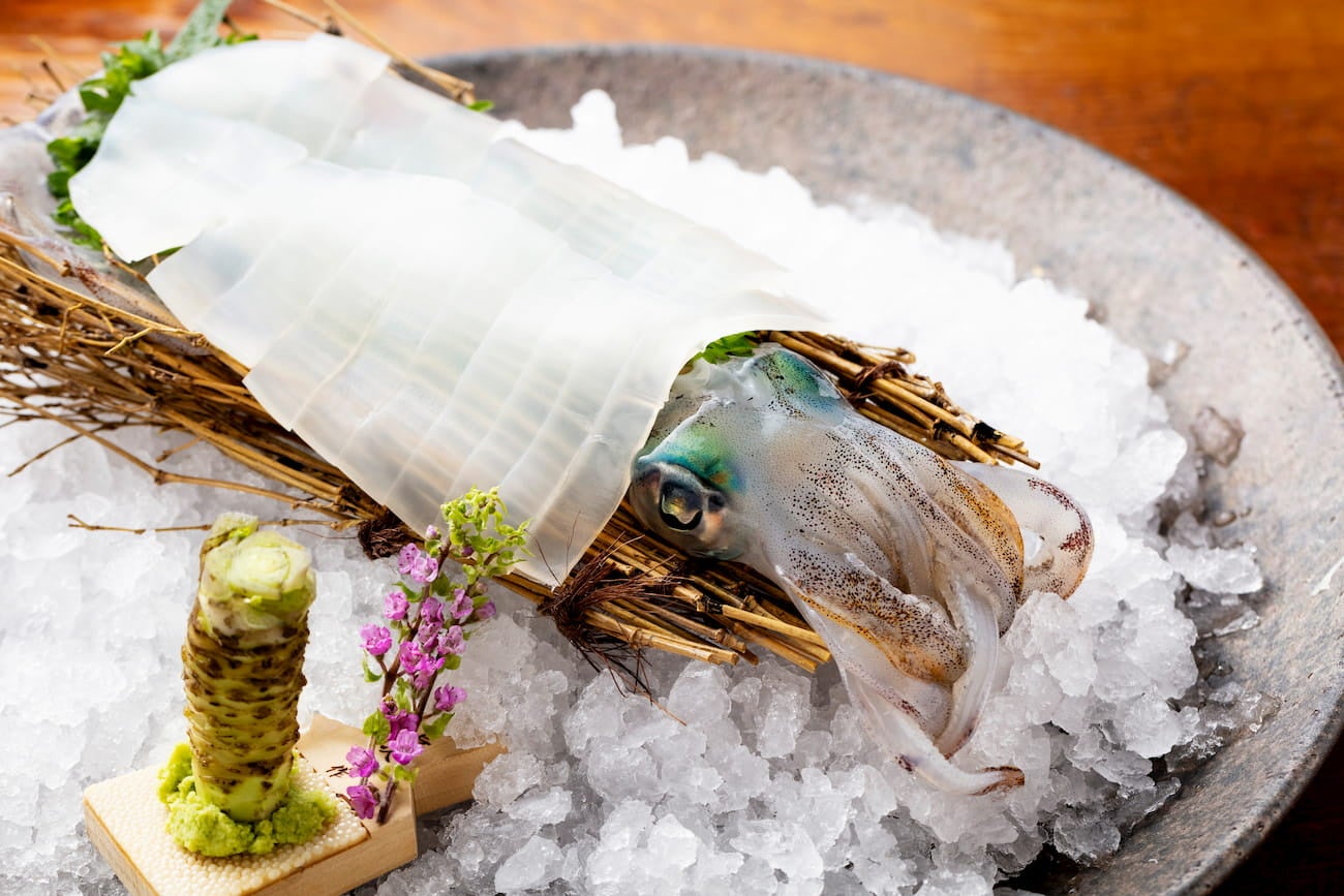 新鮮なイカの甘味と歯応えを楽しめる「活きイカ姿造り」や、藁の香りと合わせた鰹の旨みを感じられる「かつお藁たたき」がおすすめです。