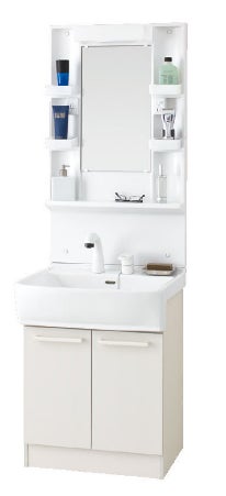 ・使い勝手が良い大容量陶器製ボウルと1面鏡ミラーキャビネットのセット
