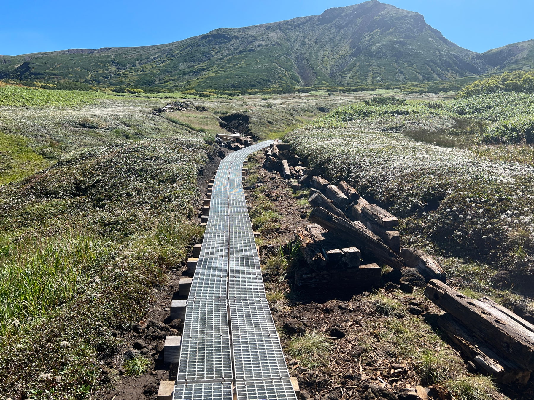 大雪山国立公園の旭岳裾合平(すそあいだいら)は、登山初心者でも訪れやすいうえに、広大なチングルマのお花畑が広がる公園屈指の景勝地です。しかし、気象変動や管理体制の弱体化により、登山道の荒廃やそれに伴うチングルマ等の高山植物の減少が進んでいます。